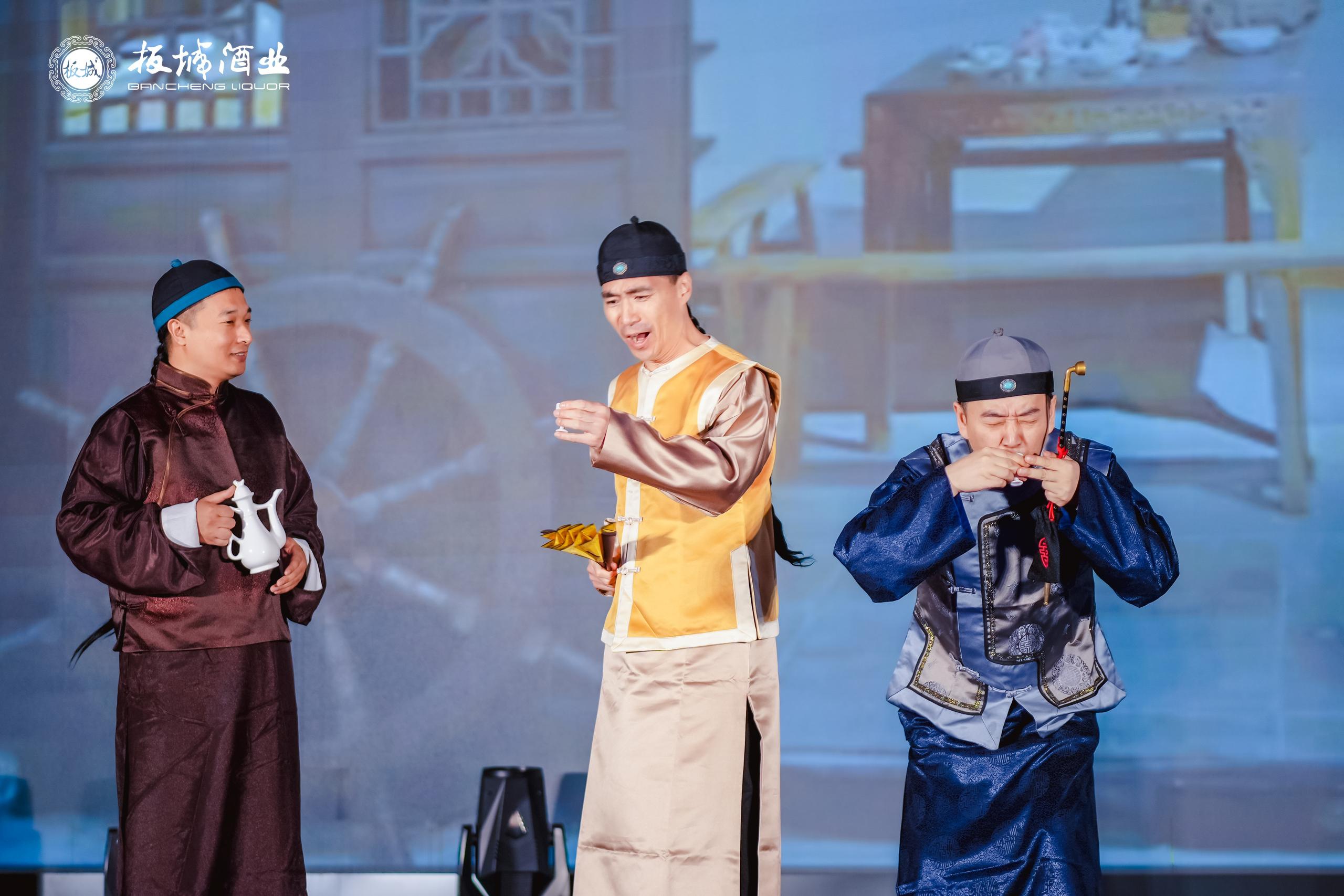 傳統(tǒng)舞蹈、燈光秀異彩紛呈,歷史情景劇再現(xiàn)乾隆與紀(jì)曉嵐共創(chuàng)“金木水火土板城燒鍋酒”千古絕對的經(jīng)典時刻,引發(fā)現(xiàn)場陣陣掌聲。