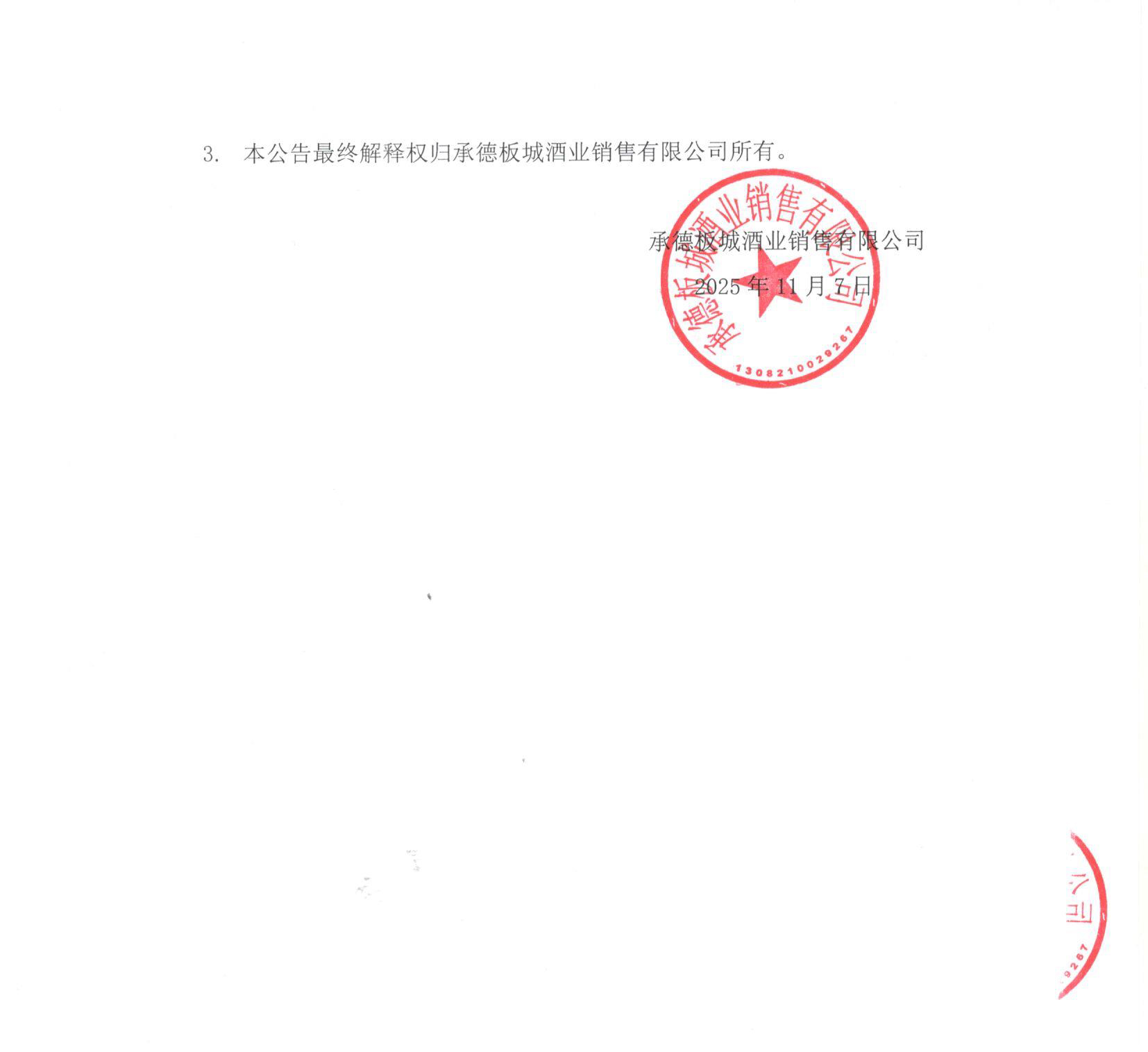 承德板城酒業(yè)銷售有限公司